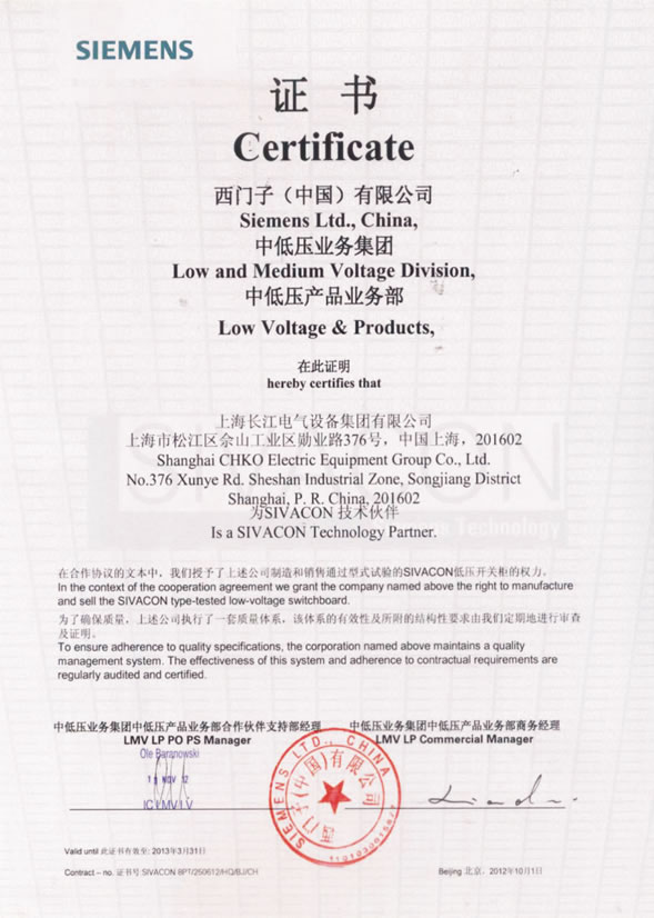 西门子技术合作证书
