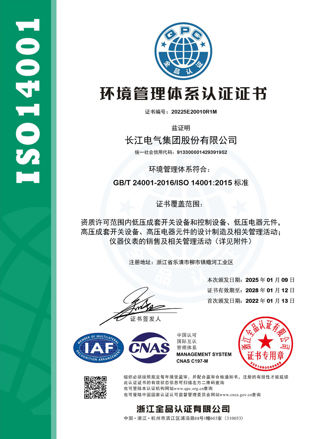 环境管理体系认证证书