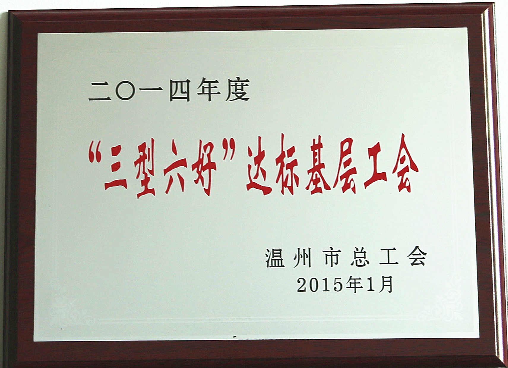 本网讯 近日,温州市总工会表彰了一批先进集体和个人,中国电竞官方网工会被评为2014年N温州市“三型六好”达标基层工会。
