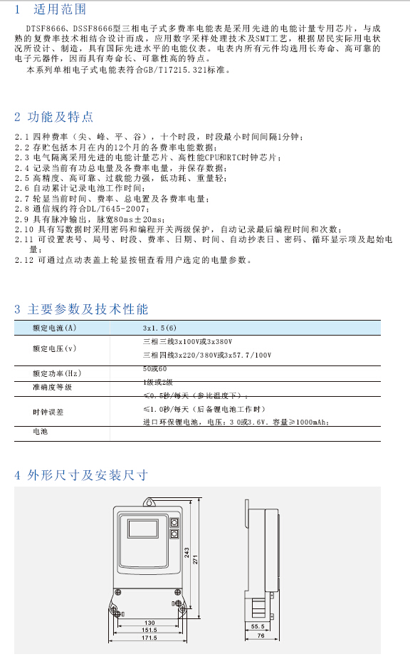 DTSF8666、DSSF8666系列三相电子式多费率电能表8