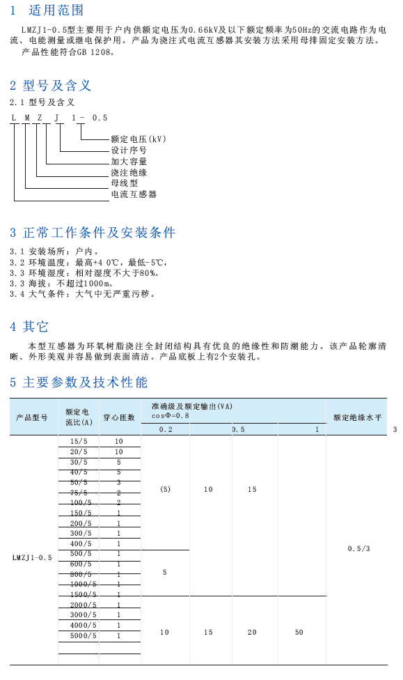 LMZJ1-0.5型电流互感器