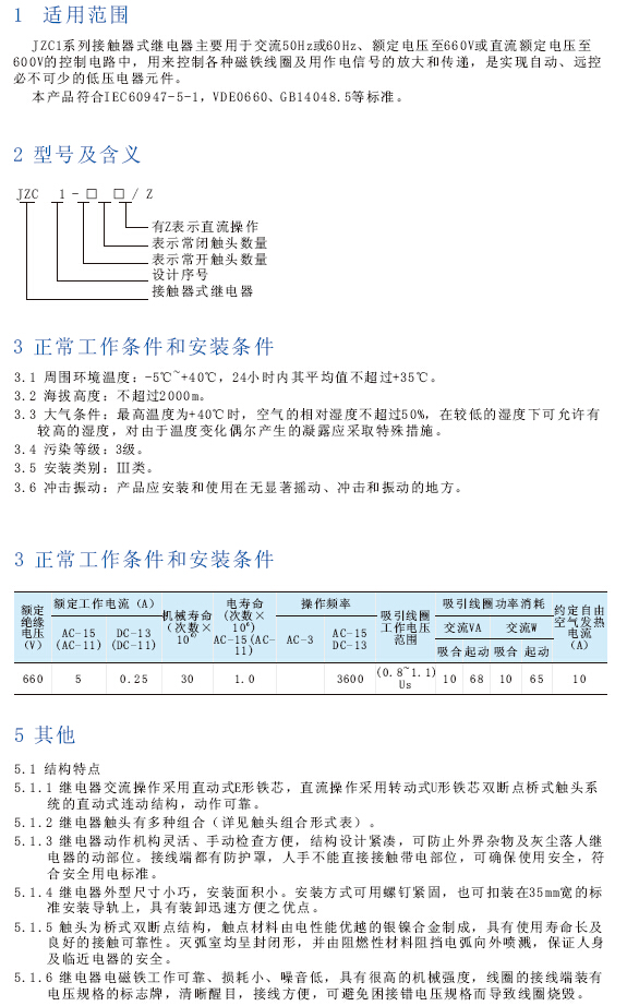 JZC1系列接触器式继电器